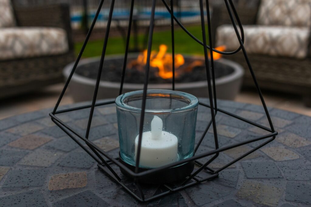Want to take it up a notch? A small fire pit or a group of flameless pillar candles creates the coziest gathering spot. Picture toasted marshmallows, fairy lights overhead, and your favorite people laughing under the stars.